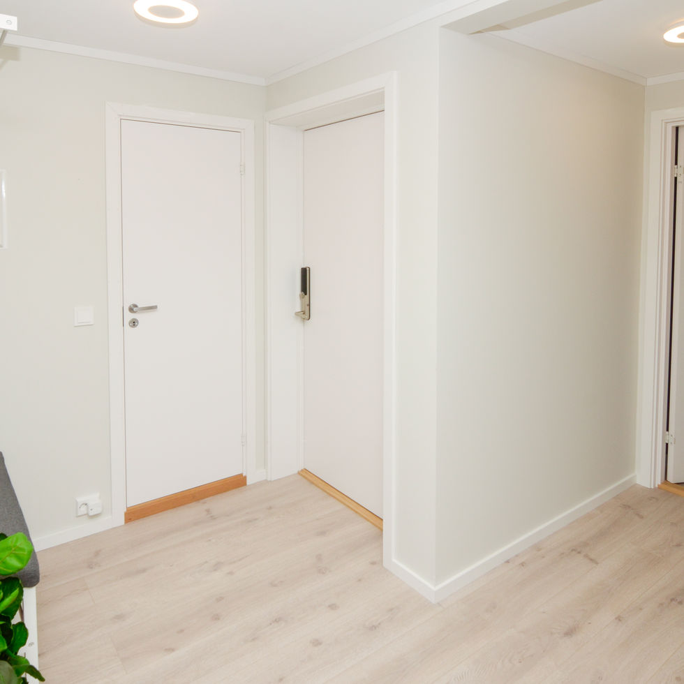 Ny komplett m øblert lys og fin leilighet med fantastisk beliggenhet og høg standard. Alt inkludert av møblar, kvite- og brunevarer, sengetøy og håndklær, kjøkkenutstyr, internet/ kabel-TV, parkering, peis osv. El-bil lading betales etter forbruk. Str 49 kvm, 3 etg., 5 soveplasser, 2 soverom, balkong 49 kvm, gratis parkering.